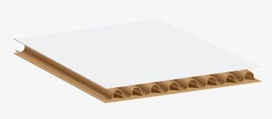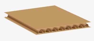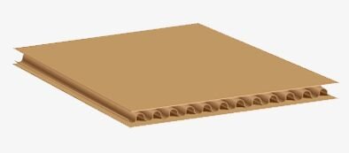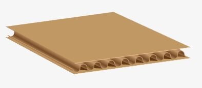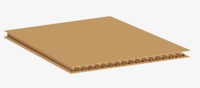 Two pieces of fluted material glued between three pieces of liner.