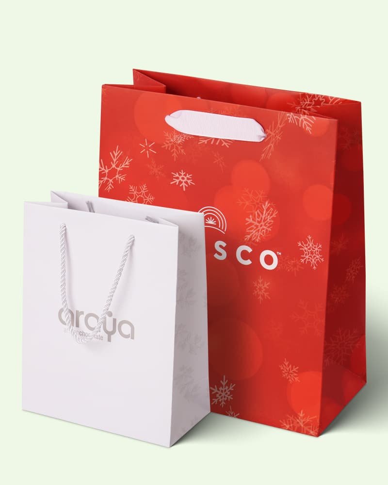 Choose from a variety of sizes, styles, materials, finishes, and printing options to create the perfect branded paper bag. Whether it’s embossing, foil stamping, or custom handles, we bring your vision to life.